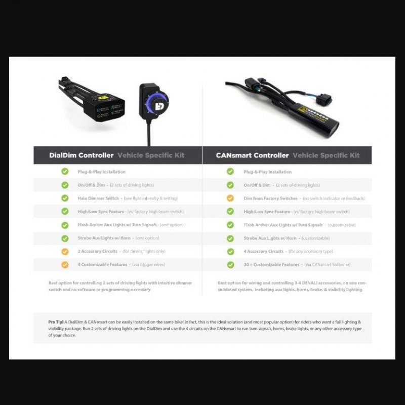 Der innovative DENALI DialDim Lighting Controller wurde speziell entwickelt, um Ihnen maximale Kontrolle über Ihre Zusatzscheinwerfer zu ermöglichen. Er ist passend für BMW R 1250 GS (ab 2021) und BMW R 1250 GS Adventure (ab 2019). Mit dem patentierten mehrfarbigen Halo-Dimmschalter können Sie zwei 3-Draht-Lichtsätze unabhängig voneinander ein- oder ausschalten und nahtlos dimmen. Der Halo zeigt Ihnen über farbige LEDs immer die aktive Lichtgruppe und Intensität an – für übersichtliche, sichere Bedienung während der Fahrt.