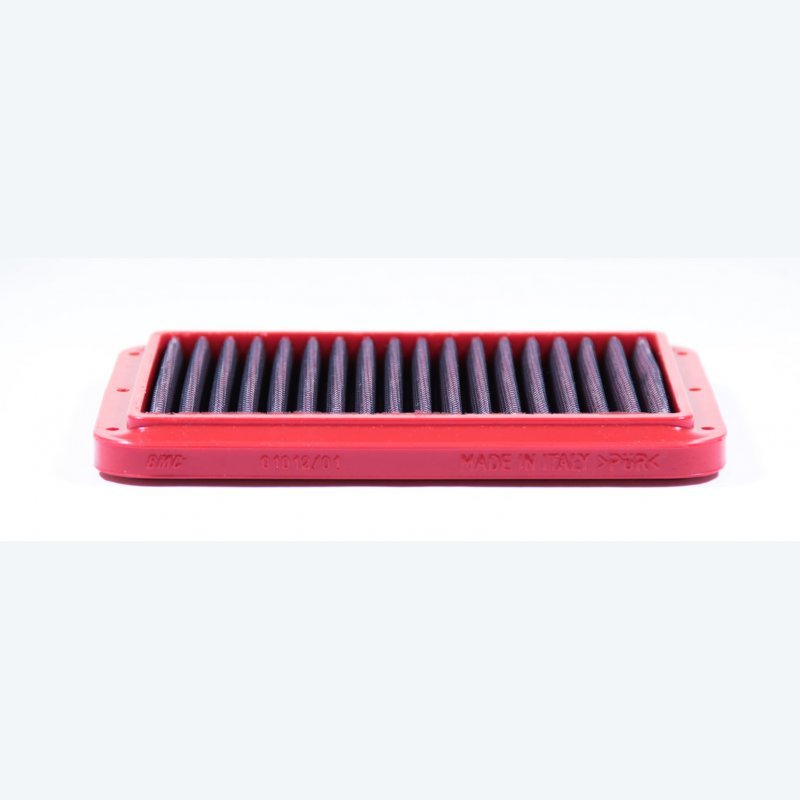 Das erworbene Know-how auf den Rennstrecken wird direkt in die Produktion der Serienfilter eingebracht, um dem anspruchsvollen Motorradfahrer ein Produkt zu bieten, das erprobt ist, Leistung bringt und sich in einer ständigen Evolution befindet. Die verwendeten Materialien sind die besten, die momentan auf dem Markt verfügbar sind. Die Filter werden aus einem einzigen Gummirahmen hergestellt, um eventuelle Brüche zu verhindern. Das filtrierende Element ist aus einem speziellen Baumwollgewebe, getränkt in einem Öl mit geringer Klebrigkeit. Es wird umfasst von einem Aluminiumnetz, das mit einer Epoxidlösung behandelt ist, um gegen die Benzindämpfe und der Oxidation resistent zu sein. Zudem hat die Baumwolle den Vorteil auswaschbar und wieder verwendbar zu sein. Durch diese Merkmale ren die BMC-Sportluftfilter einen höheren Luftdurchsatz gegenüber den original verwendeten Papier-Filter, einen minimalen Druckverlust der eintretenden Luft und führen somit zu einer besseren Leistung des Motors.