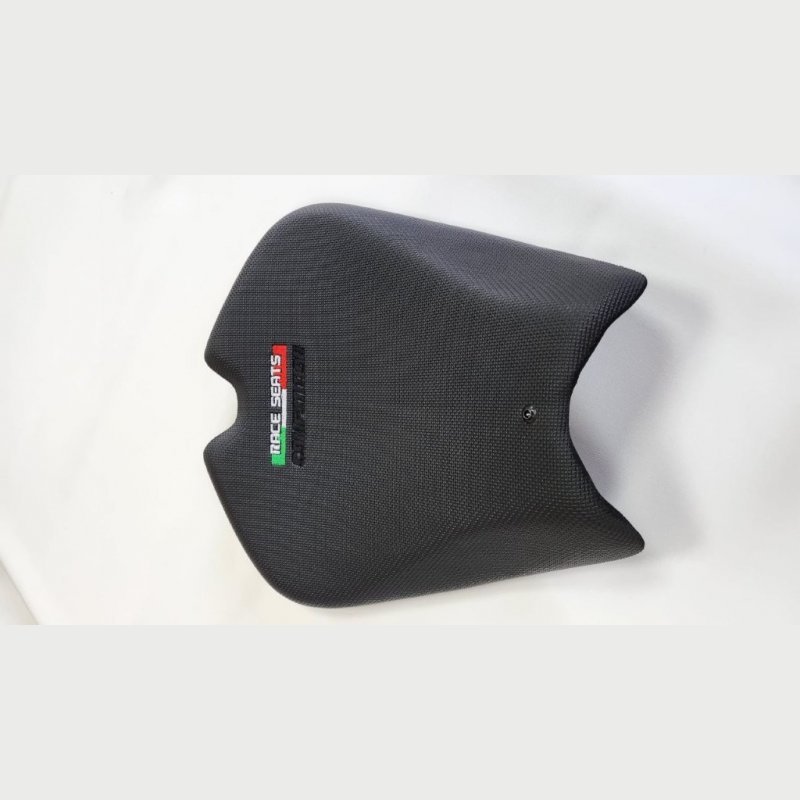 Der Sitz nutzt eine spezielle Mousse mit extrem hoher Dichte, identisch zu den Materialien, die in SBK-, Moto2- und MotoGP-Motorrädern eingesetzt werden. Dies sorgt für hervorragenden Grip und eine stabile Sitzposition. Eine leichte Rissbildung im Material ist produkttypisch und stellt keinen Mangel dar, sondern ist Teil der speziellen Rennsportbeschaffenheit.