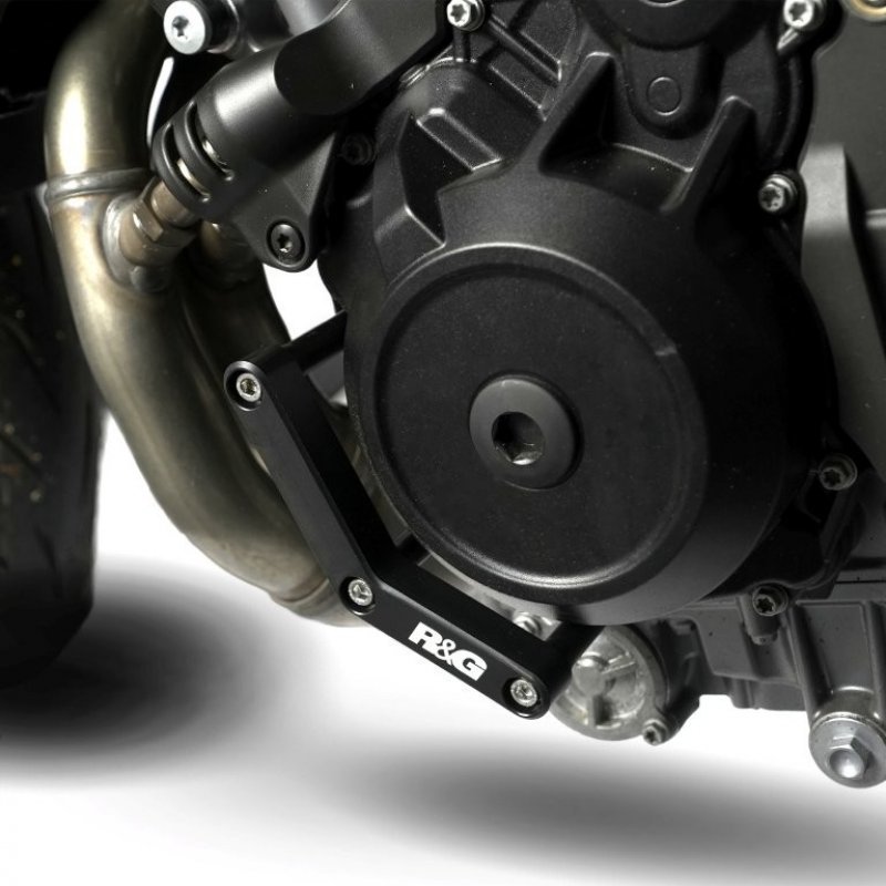 Dieser Motordeckelschutz arbeitet wie ein Schleifer. Bei einem Sturz rutscht das Motorrad nicht auf dem Motordeckel, sondern