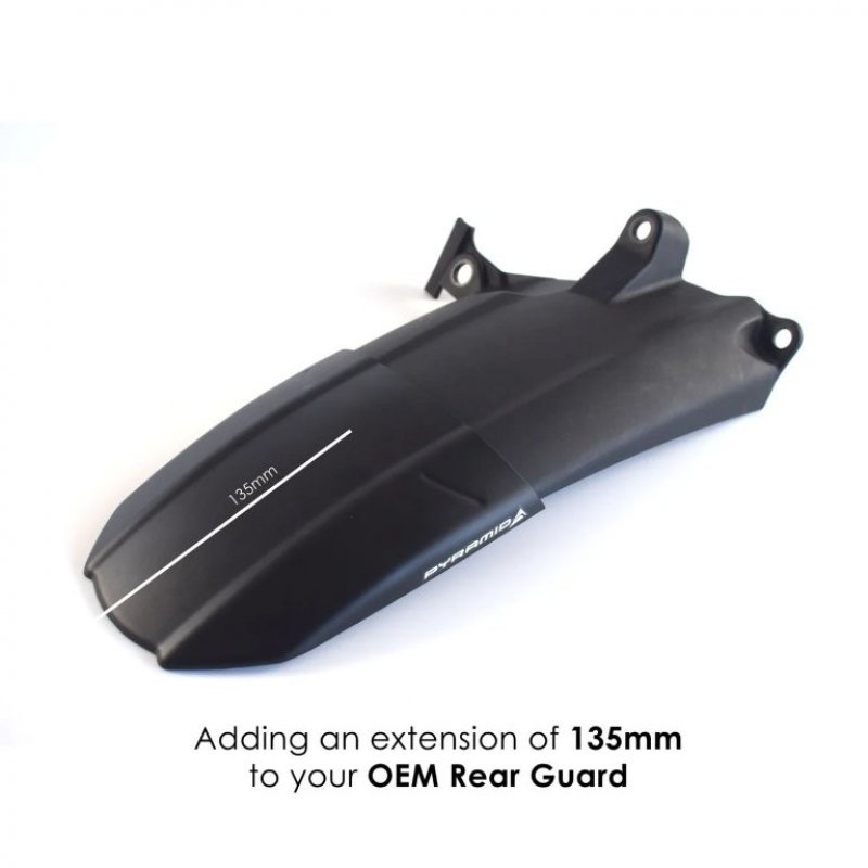 Die Pyramid Hinterradabdeckung Verlängerung in Schwarz Matt wurde speziell entwickelt, um den originalen hinteren Kotflügel Ihres Motorrads zu verlängern und effektiv vor Schmutz, Wasser und Straßenschmutz zu schützen. Sie besteht aus hochwertigem ABS-Material und überzeugt durch eine robuste und langlebige Konstruktion. Die Verlängerung folgt exakt der Kontur des vorhandenen Kotflügels und sorgt dadurch für eine perfekte Passform und eine harmonische Optik.
