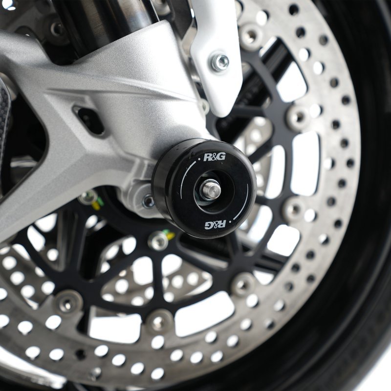 Die R&G Gabel Protektoren bieten einen ausgezeichneten Schutz im Falle eines Sturzes und helfen, kostspielige Beschädigungen an der Gabel Ihres Motorrads zu vermeiden. Das durchdachte Design mit versenkten Befestigungsschrauben sorgt dafür, dass diese weder an- noch abgeschliffen werden können. Die Protektoren bestehen aus robustem, stoßdämpfendem Material und sind präzise auf die Achse abgestimmt, um eine perfekte Passform und hohe Stabilität zu gewährleisten.