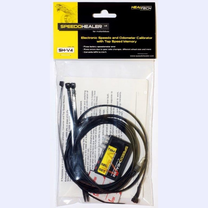 Der Healtech Speedohealer SH-V4 + SH-RE1 ist ein hochpräziser Tachokonverter, der entwickelt wurde, um die Geschwindigkeitsanzeige Ihres Motorrads optimal zu korrigieren. Ob bei einer Änderung der Übersetzung, einer Umrüstung auf andere Reifengrößen oder beim Import von Fahrzeugen mit Meilenanzeige – dieses System sorgt für eine akkurate und zuverlässige Anpassung der Anzeige. Damit werden Tachotoleranzen effektiv ausgeglichen und Sie profitieren von exakten Geschwindigkeitswerten. Zusätzlich kann mit dem integrierten Speicher die tatsächlich gefahrene Höchstgeschwindigkeit abgerufen werden.