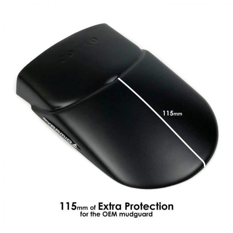 Die Pyramid Hinterradabdeckung Verlängerung Schwarz Matt wurde speziell entwickelt, um die originale Hinterradabdeckung Ihres Motorrads zu verlängern und den Schutz vor Schmutz, Wasser und Steinschlag deutlich zu verbessern. Hergestellt aus hochwertigem ABS-Kunststoff sorgt die Verlängerung für eine robuste, langlebige und UV-beständige Ergänzung zum OEM-Kotflügel. Sie folgt exakt der vorhandenen Kontur des hinteren Kotflügels und gewährleistet so eine perfekte Passform und ein harmonisches Erscheinungsbild.
